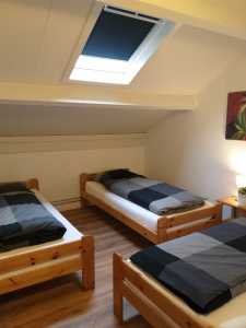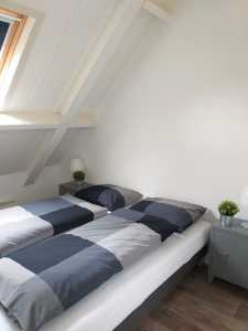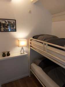 Boven etage: twee slaapkamers. In het vierpersoons appartement staat een stapelbed.