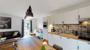 Het appartement is voorzien van een televisie, koelkast met vriesvak, 4-pits kooktoestel, combi oven/magnetron, vaatwasmachine, koffiezetapparaat, Senseo en complete keuken inventaris.